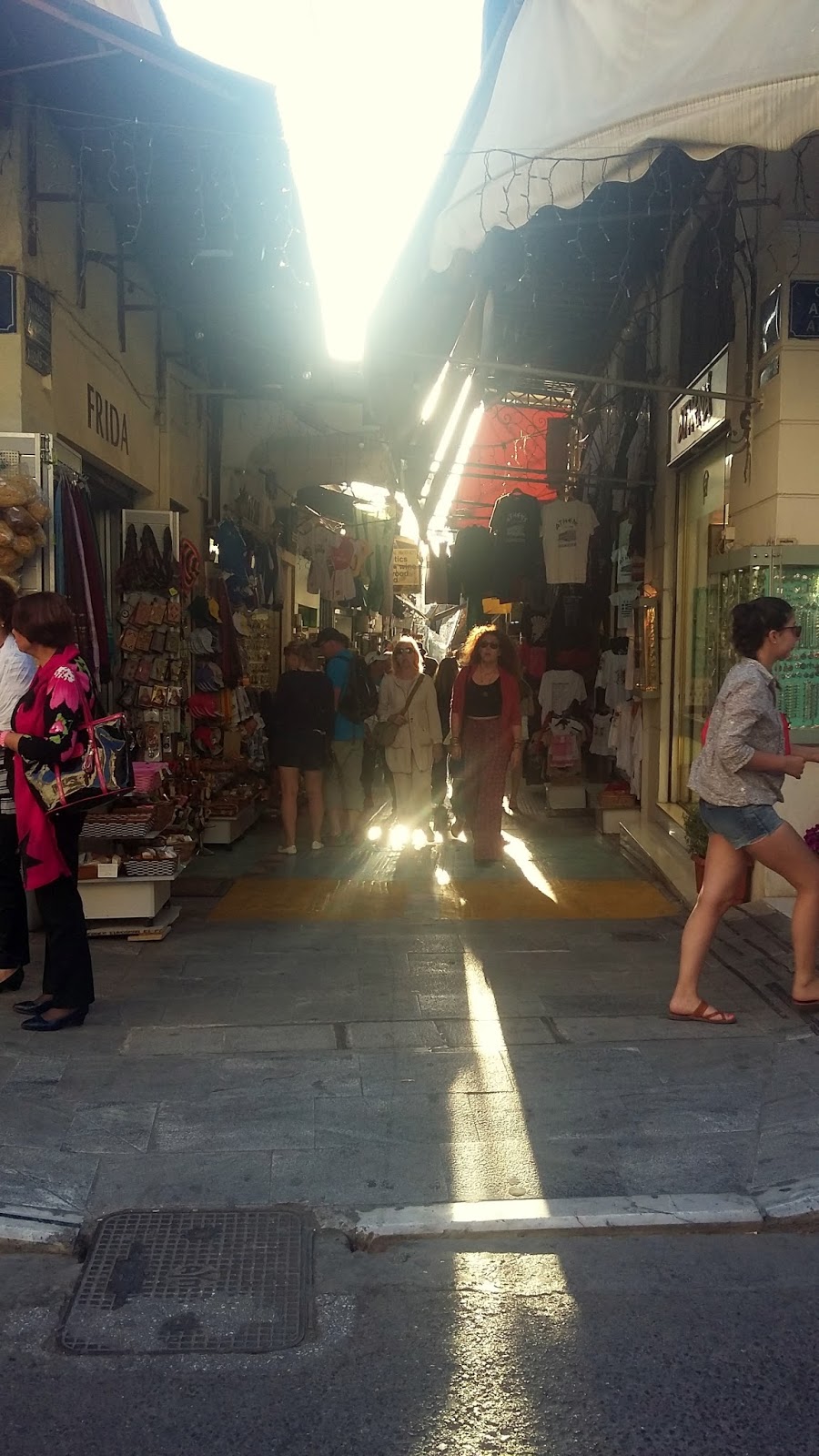 Po zaspokojeniu największego głodu daliśmy się wciągnąć w szał zakupowy. Czyli zagłębiliśmy się w kramy i stragany w dzielnicy Monastiraki. Kto mnie zna, ten wie, że uwielbiam stragany, które przed Bożym Narodzeniem rozstawiają się w miastach. Właśnie z nimi skojarzyły mi się kramy w Atenach. Tłum, gwar, mnóstwo bibelotów, pamiątek... Większość sprzedawców bardzo pozytywnie nastawiona do Polaków, zagadywali nas łamaną polszczyzną. Aż żałowałam, że nie mogę u każdego z nich czegoś kupić