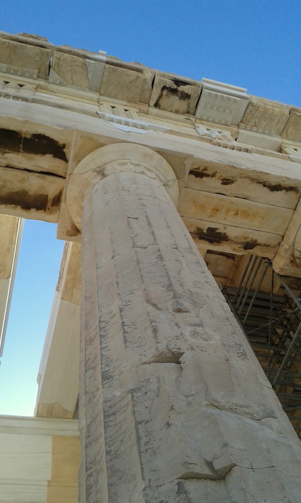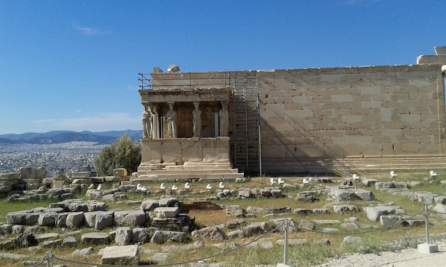 Po kilku kolejnych chwilach wędrówki naszym oczom ukazało się to, co jest symbolem Aten, co znajduje się na niemal każdej pocztówce, co przychodzi na myśl, gdy tylko pomyśli się o Atenach. Partenon. Świątynia poświęcona Atenie Dziewicy (Ateny Partenos). Nie poczułam się ani trochę rozczarowana. Piękne, kredobiałe kolumny. Obok Erechtejon – budowla wzniesiona na cześć Posejdona i Ateny. Nigdy nie byłam wielbicielką ani znawcą architektury, styl joński myli mi się z doryckim i walorów budowli nie umiem odbierać umysłem. Ale gdy widzę coś, co mnie zachwyca, w mojej głowie pojawia się tylko słowo "łał". Podobnie czułam się na wzgórzach Akropolu. Nie było dla mnie ważne, w jakim stylu zostały zbudowane te świątynie. Są po prostu piękne.