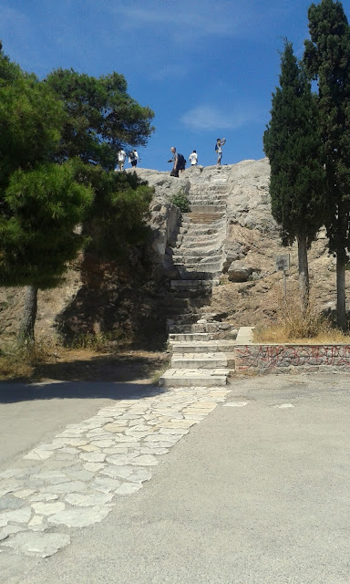 Ze Wzgórza Aresa udaliśmy się w dół, by przed wejściem na Akropol, obejrzeć po drodze inne zabytki. Schodziliśmy wśród krajobrazów, które nieustannie kojarzyły mi się z Ziemią Świętą. Tzn. nigdy tam nie byłam, ale tak właśnie sobie ją wyobrażam. 1/3 naszej wycieczki, która zwiedziła Izrael, wyprostowała moje myślenie, że to jednak jeszcze nie to. Ale według mnie te widoki mają w sobie coś mistycznego
