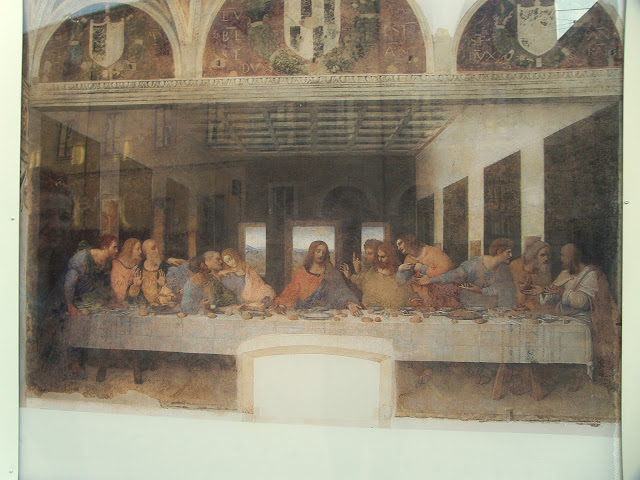 Także w Mediolanie znajduje się jedno z największych dzieł Leonarda da Vinci – "Ostatnia wieczerza". Fresk można obejrzeć w kościele Santa Maria delle Gracie, do którego również się udaliśmy. Aby obejrzeć "Ostatnią wieczerzę", trzeba znacznie wcześniej zarezerwować bilety. My próbowaliśmy to zrobić ok. 2 tygodnie przed wylotem, ale już wtedy nie było żadnego wolnego miejsca. Czasami jednak zdarza się, że ktoś nie odbiera zamówionych biletów. I z taką nadzieją pojechaliśmy do Santa Maria delle Gracie. Liczyliśmy, że uda nam się zdobyć choćby dwie wejściówki – dla 2/4, którzy bardzo chcieli zobaczyć fresk mistrza Leonarda. Niestety, mimo kilku prób, nie udało się kupić ani jednego biletu. "Ostatnią wieczerzę" zobaczyliśmy tylko na tablicy informacyjnej przed kościołem.