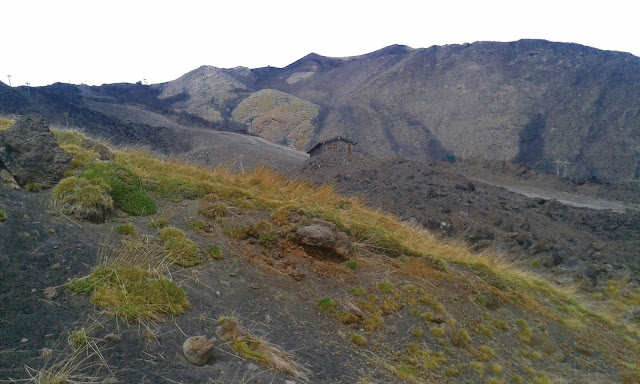 Po mniej więcej dwóch godzinach wariackiej jazdy autobusem po krętych górskich uliczkach byliśmy na miejscu. Cała wycieczka wysypała się z autokaru na duży parking przed wulkanem. Do tej pory mieliśmy w planie wjechać na Etnę kolejką. Ale gdy spojrzeliśmy w górę i zobaczyliśmy, że wagoniki nie dojeżdżają wcale tak wysoko, postanowiliśmy, że zaoszczędzimy pieniądze, a zmarnujemy kalorie i rozpoczęliśmy wspinaczkę. Droga do schroniska zajęła nam nieco ponad dwie godziny. Biorąc pod uwagę naszą zerową kondycję i wypchane plecaki, uznać to należy za sukces. Ludzie, daliśmy radę! Wspieliśmy się na wysokość 2700 metrów! Etna zdobyta! Uczucie satysfakcji niesamowite:)
